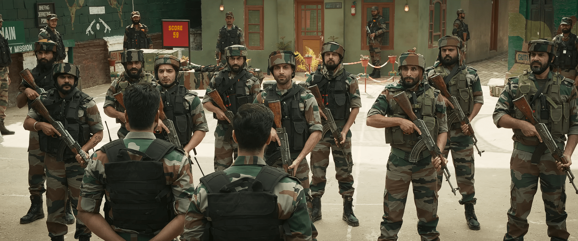 The film attempts to showcase intelligence operations but only scratches the surface. In real counter-insurgency work, soldiers mingle with civilians, gather information, insert spies, and strategically identify enemies before engaging. The film includes just one scene where they send a spy inside, and that too feels brief. I was hoping for more detailed representation of these behind-the-scenes operations, as these elements often make military dramas more layered and insightful.