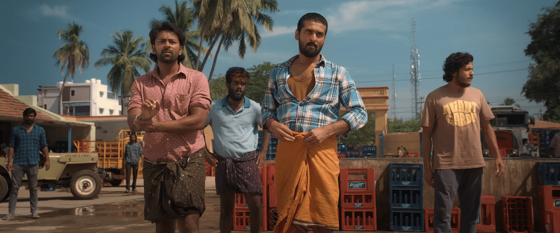 The story opens in a small town planted right on the Tamil Nadu–Kerala border. It is a place buzzing with local pride, language mix, and gang politics – all of which should theoretically create a rich backdrop. Here, our hero and his close-knit group of friends operate a kabaddi team that no one in the village seems capable of defeating. Their camaraderie and competitive spirit form the emotional spine of the first act.