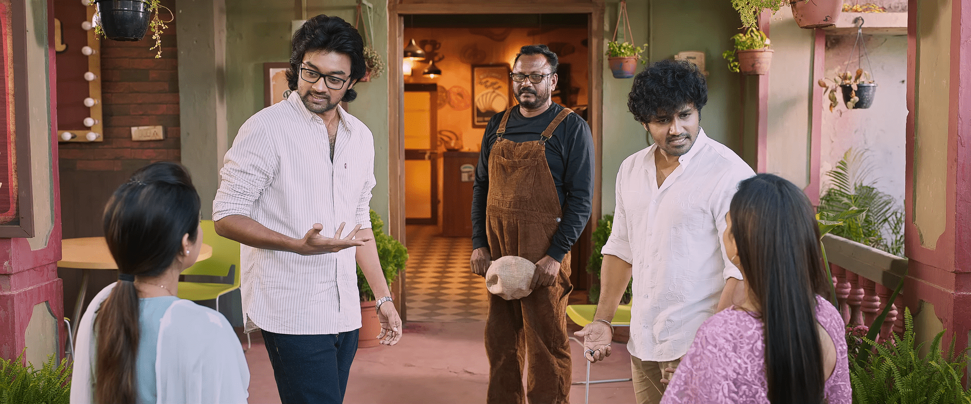 The writing hints at inspiration from the chaotic comedic sketches of Vivek, particularly the kind where characters rapidly reveal secret love affairs until no one – including the audience – can keep track. Bun Butter Jam seems determined to expand that comedy into a full-length narrative, though whether it successfully translates that humour is debatable.