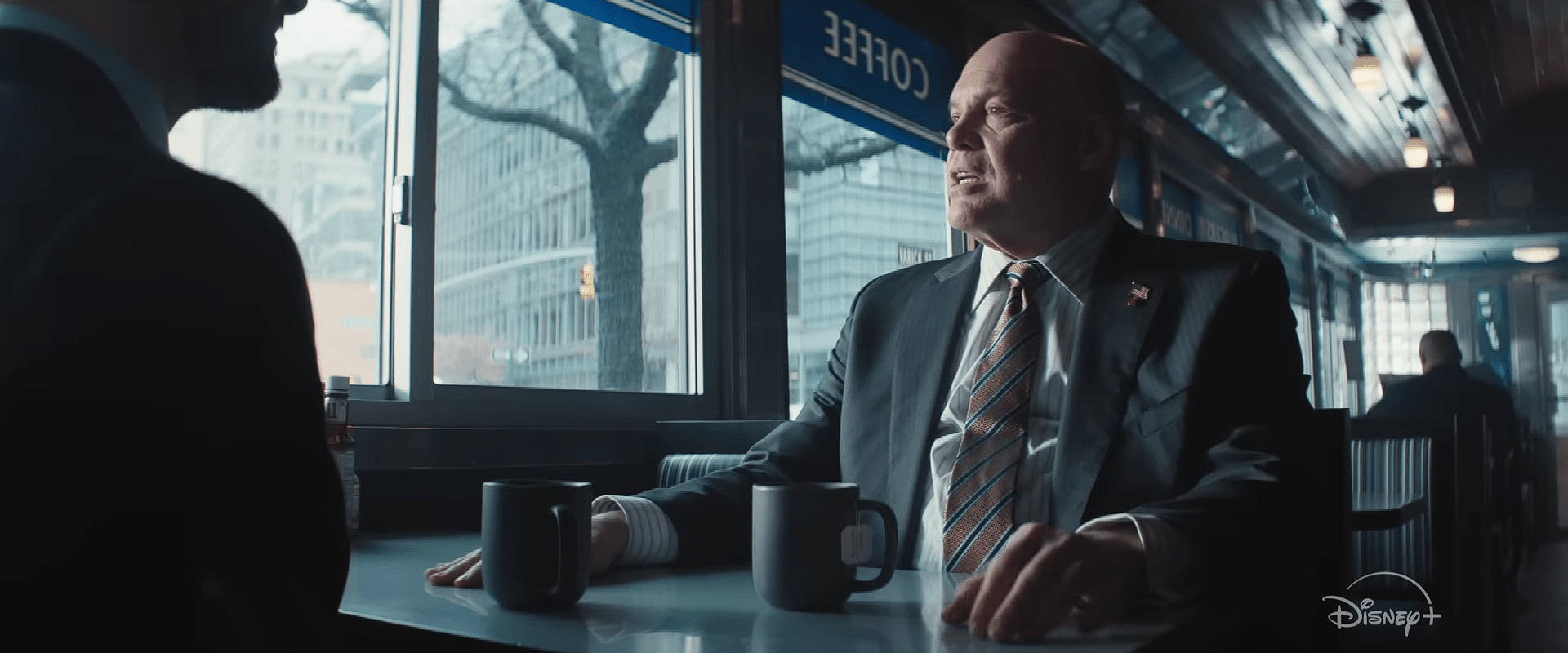 On the other side, Wilson Fisk – after being beaten by Kate Bishop in Hawkeye and shot in the face in Echo – returns to New York more humiliated than ever. And that humiliation shapes his new ambition: he wants to become the mayor.