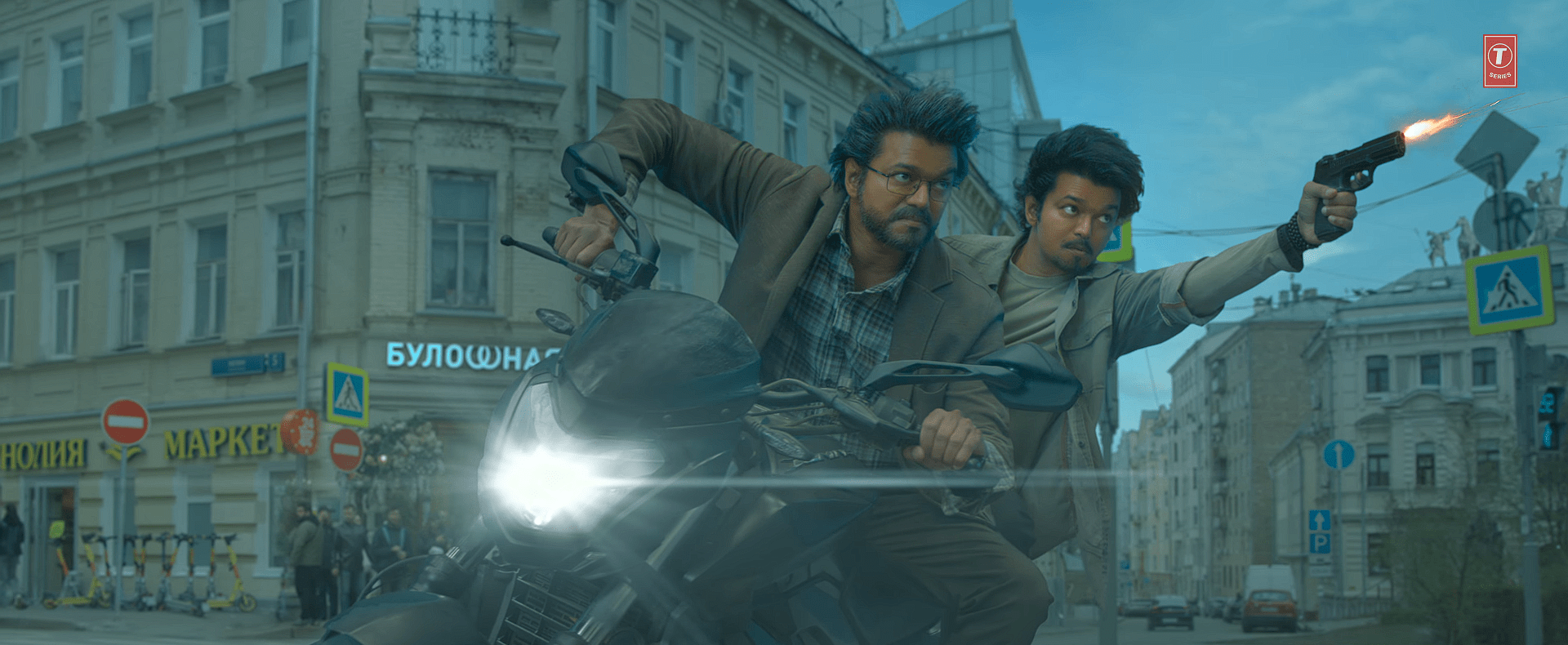 The film fast-forwards 16 years. Gandhi is now older, visibly worn by years of violence and regret. His son, meanwhile, has grown into a young adult who looks exactly like him. The resemblance is not simply narrative convenience – Thalapathy Vijay plays both roles, a father and a mirror reflection of his younger self.