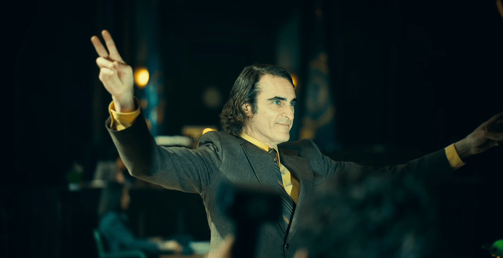 As much as I remember about the first movie, Arthur Fleck was a random, broken man beaten by systemic cruelty – mocked, ignored, stripped of dignity until he fractured and transformed. By the end, society didn’t just watch him – they baptized him. He killed a host live on television; people saw it, talked about it, mythologized it. Everyone projected their rage and hopelessness onto this one madman and turned a failed comedian into a legend. They created an idea, an identity that Arthur Fleck himself could never escape.
