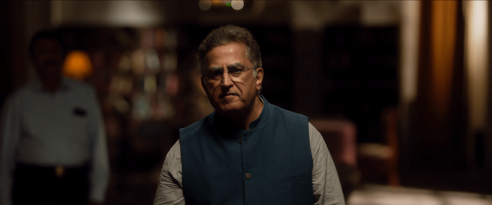 The film then shifts into the present timeline, where we meet the antagonist – a man who resembles the archetype of modern political puppeteers. A corporate lobbyist of immense influence, he seems capable of making governments bend to his whims. The inspiration from real-world political power brokers is quite evident, and the film attempts to cast him as an omnipresent threat.