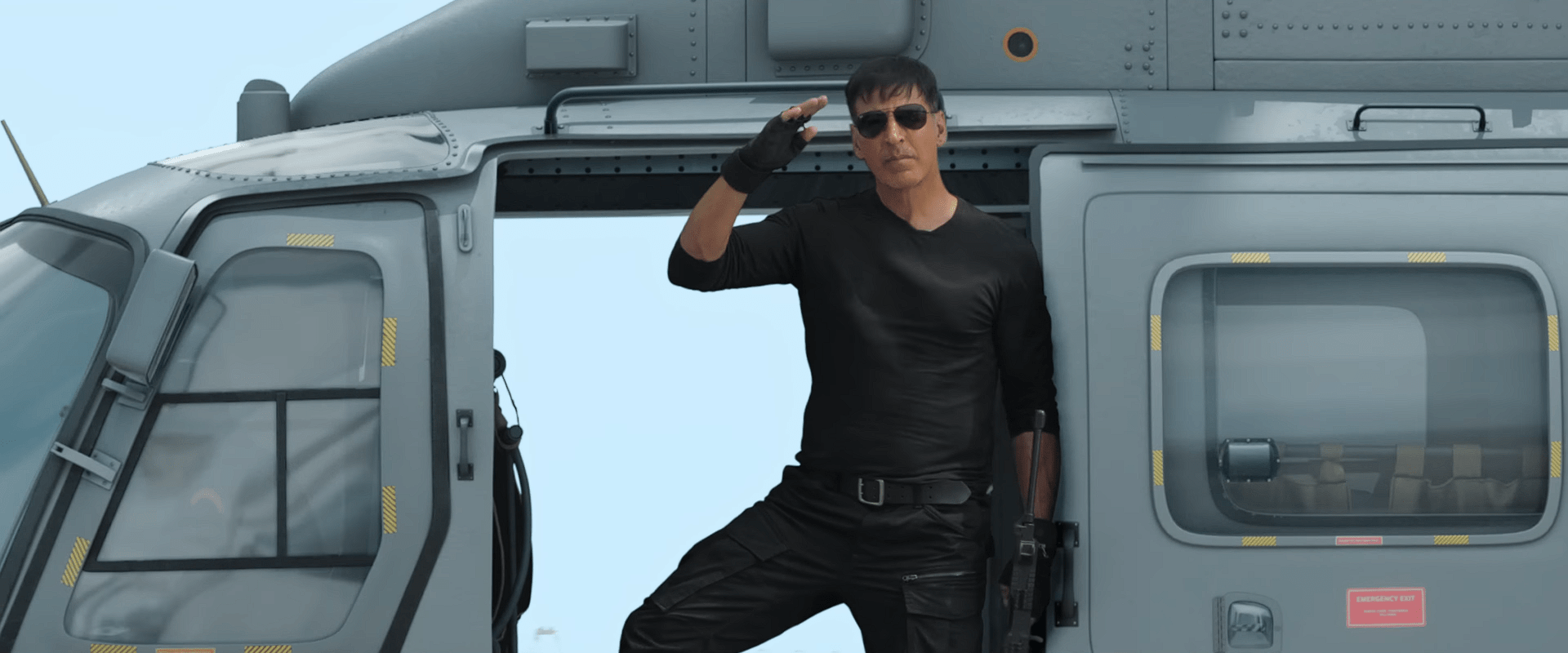 Expect that this is a Rohit Shetty film – not unique or innovative, but skilled at hype. They show Tiger Shroff’s abs, they give Akshay Kumar a cool action sequence (with slightly questionable CGI), and the rest is the usual menu – cars flipping, cars hanging and shooting, helicopters flying, hiding and shooting, flames exploding out of nowhere, and a general overuse of everything that moves or burns. Cinematography too goes one step further into excess. Backlighting is used like a religion – characters constantly glowing, halos everywhere.