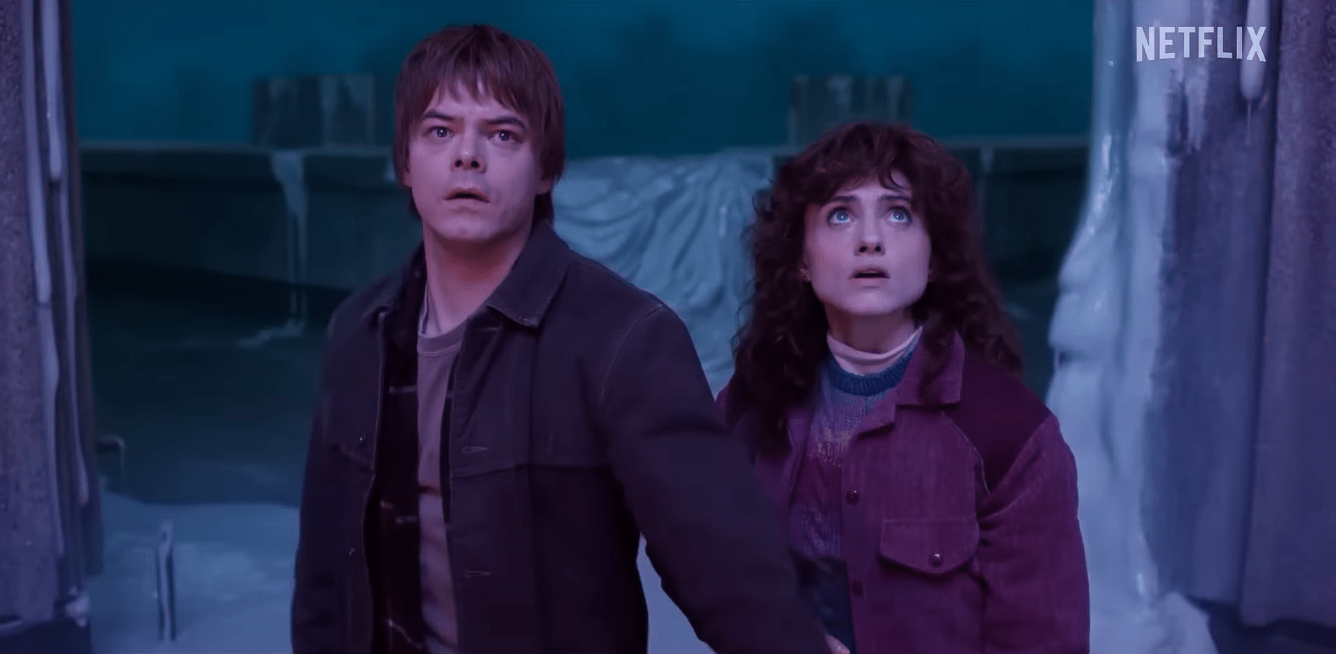 One of the most unexpected pleasures of these opening episodes is the small, subtle return of the Steve – Jonathan rivalry. The pair share moments – some humorous, some serious – and it reminded me of how far they’ve come since being rivals for Nancy’s affection. But as they climbed those stairs together, something clicked in my mind.