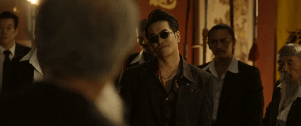 The action sequences are supposed to be stylish, but what we get instead is a confused mix of rapid cuts and invisible hits. The sword swings, the punches fly, but you never actually see the impact. A man waves a weapon in the air – cut – someone falls dramatically. Repeat that formula fifty times, and you have OG’s entire fight choreography.