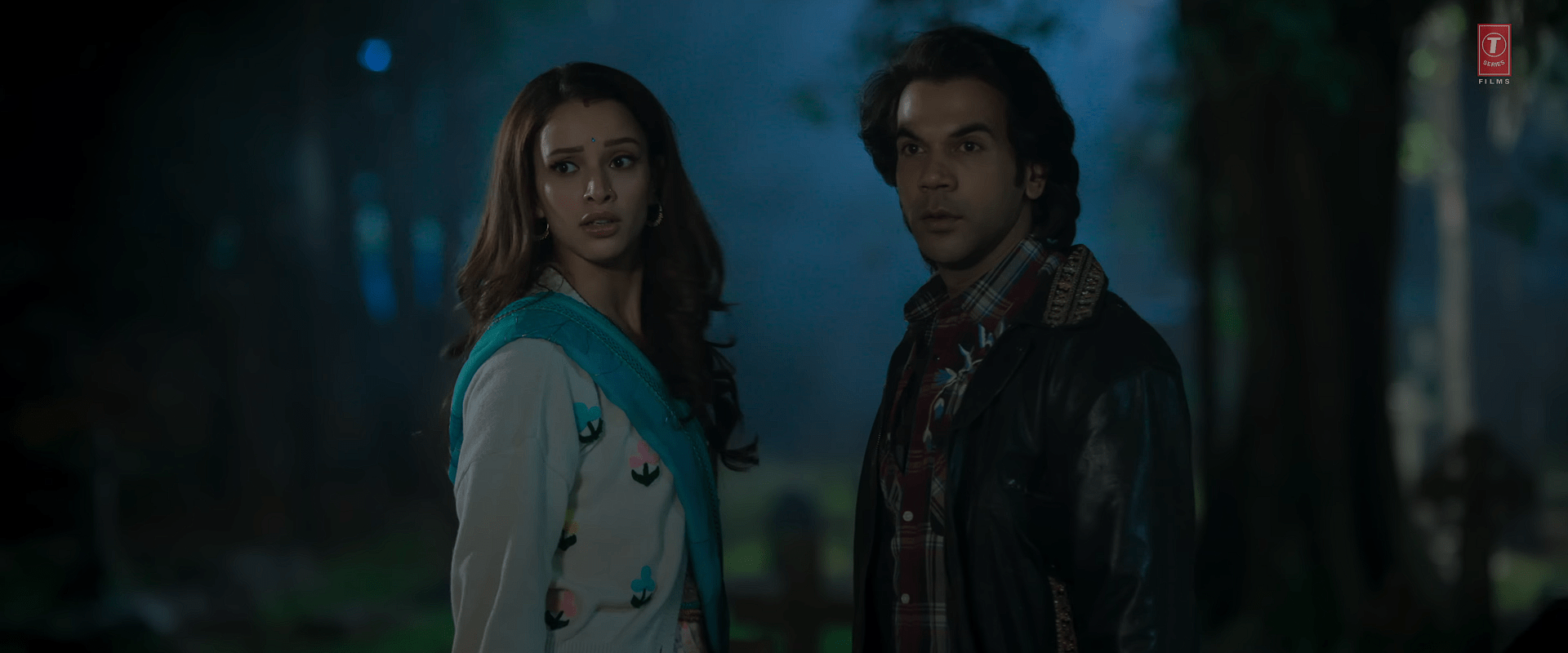 Before the emotional segment, the movie inserts a full graveyard sequence. Out of nowhere. And suddenly – a ghost appears. Not just any ghost. Stree. Yes, the Stree.
